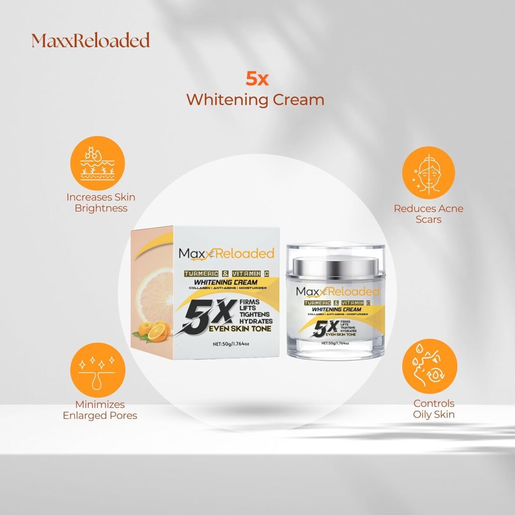 5X Whitening Cream with Turmeric & Vitamin C – Anti-Aging Moisturizer with Collagen – Firms, Lifts, Tightens & Evens Skin Tone – 1.76 fl Oz